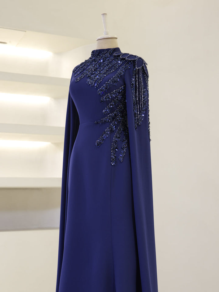 Omuzlardan etek ucuna kadar pelerin detayı mevcuttur