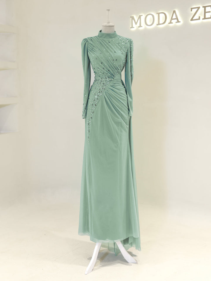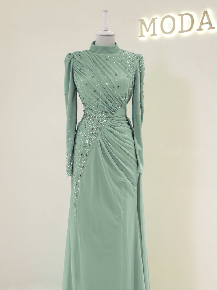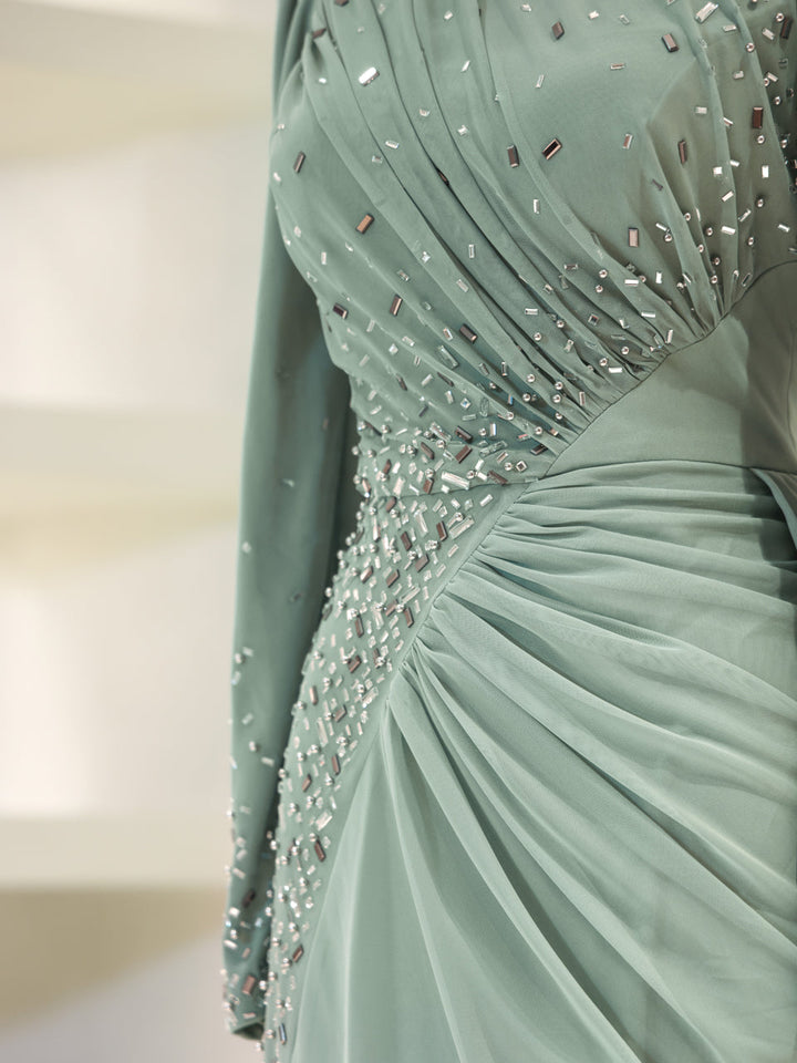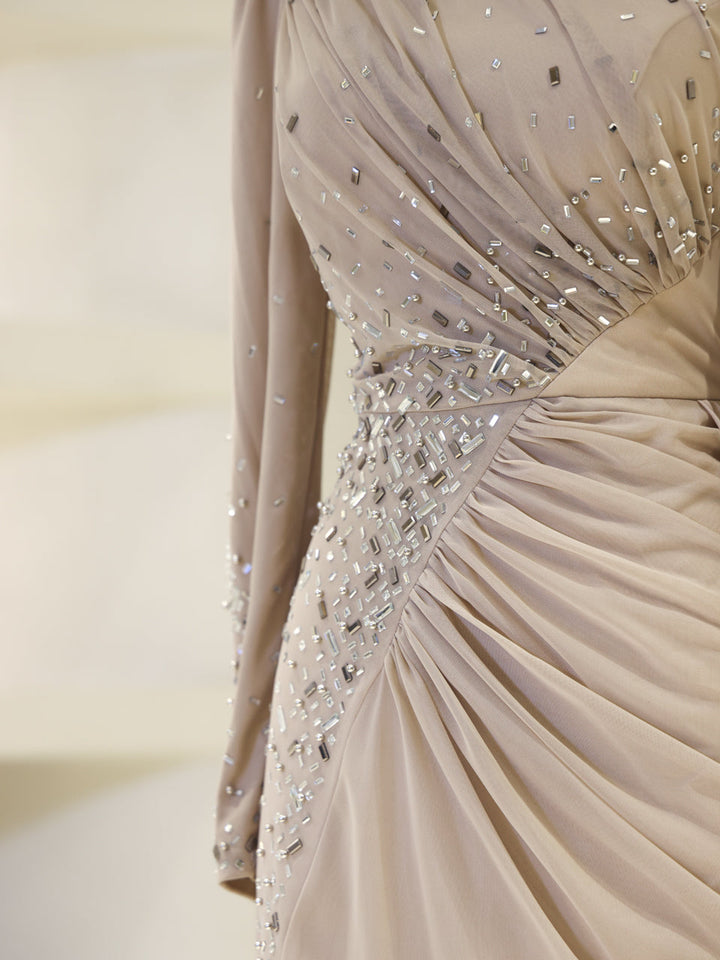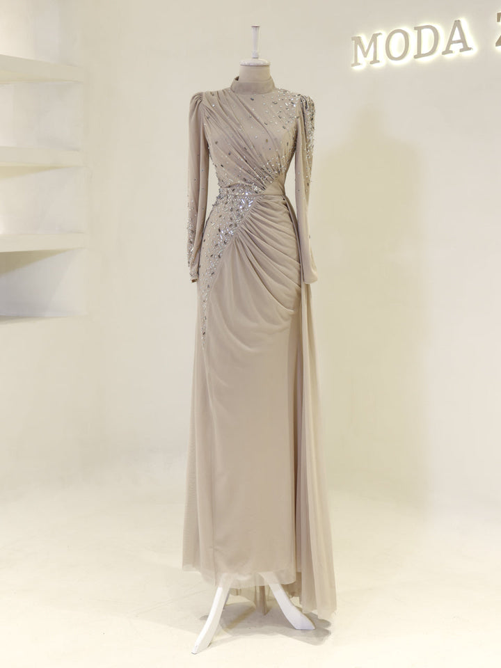 Sol bel kısmında drape ve pelerin detayı mevcuttur