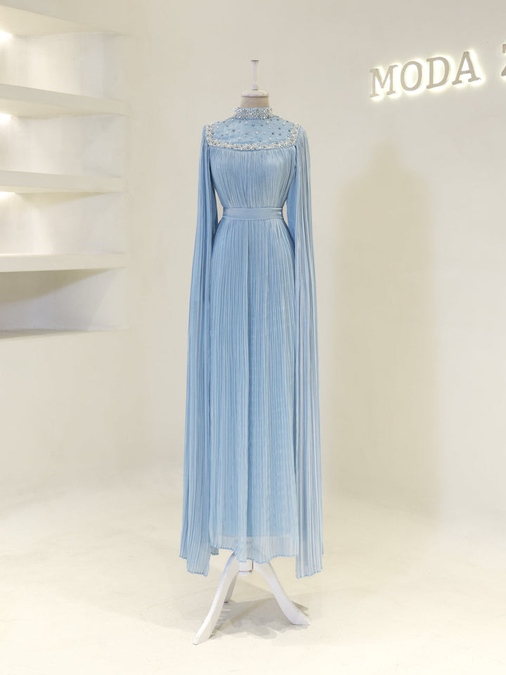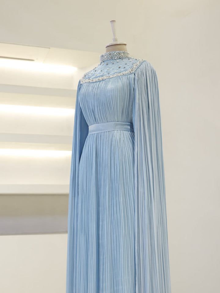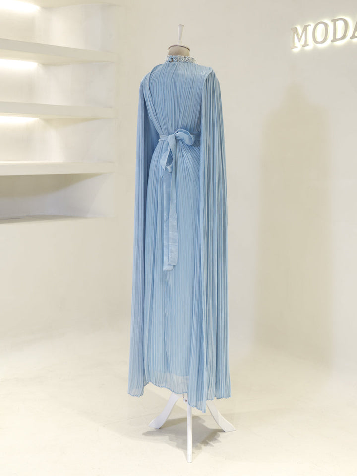Omuzlardan etek ucuna inen pelerin detayı mevcuttur