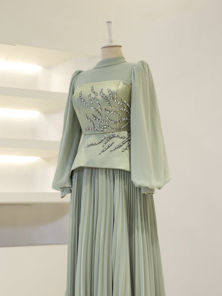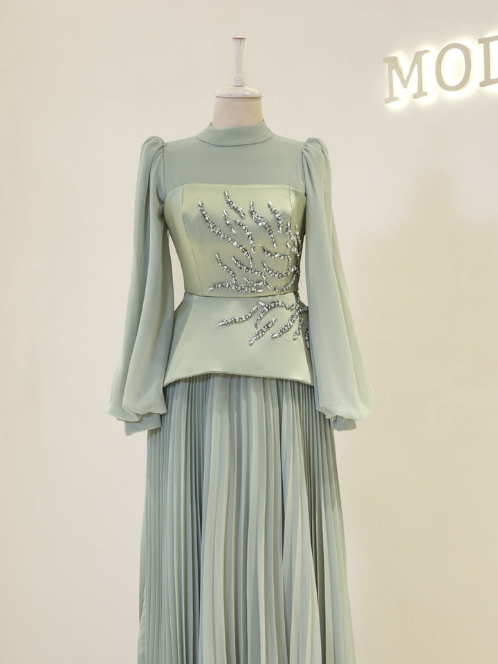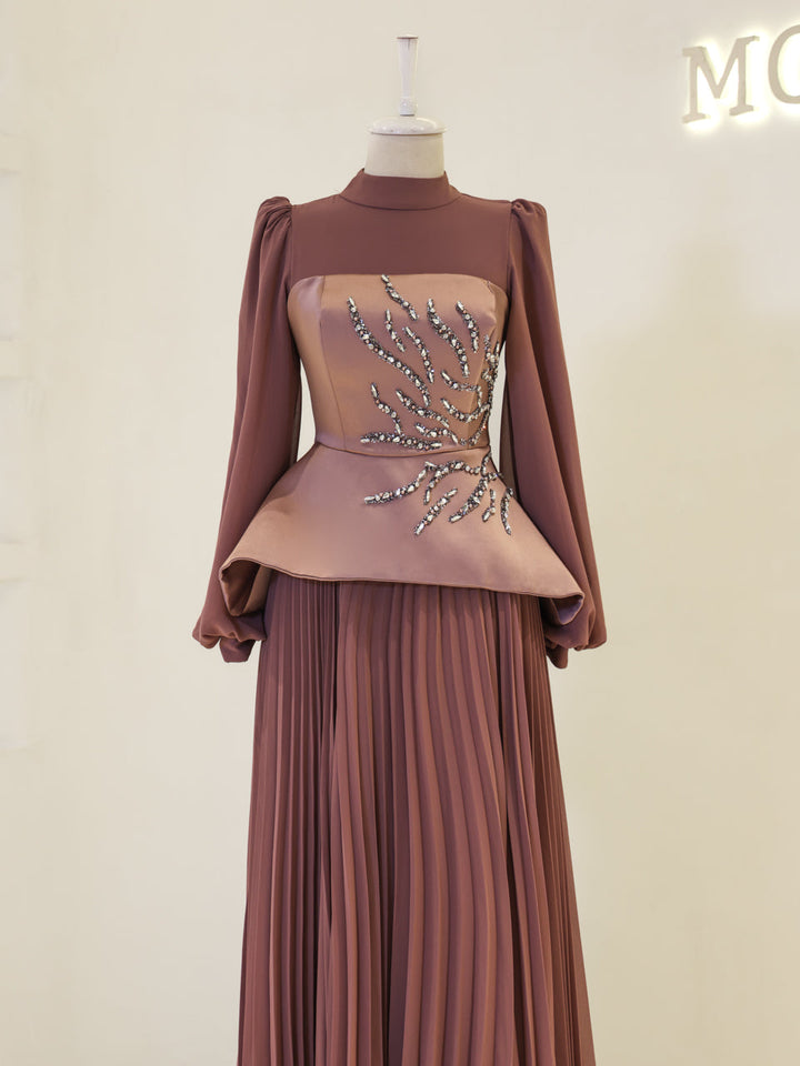 Pileli etek formuna sahiptir