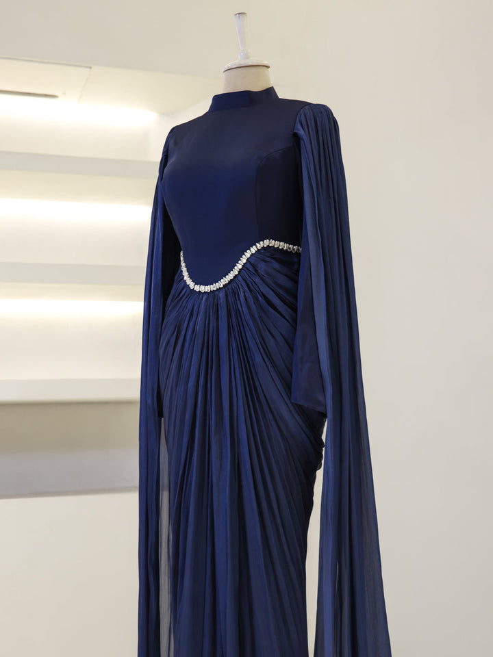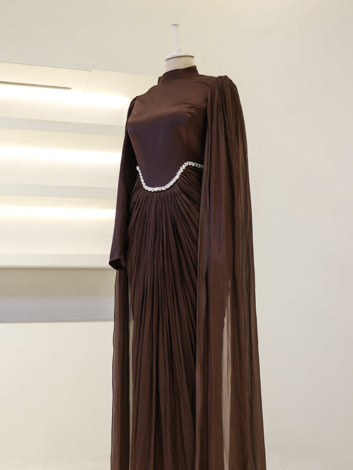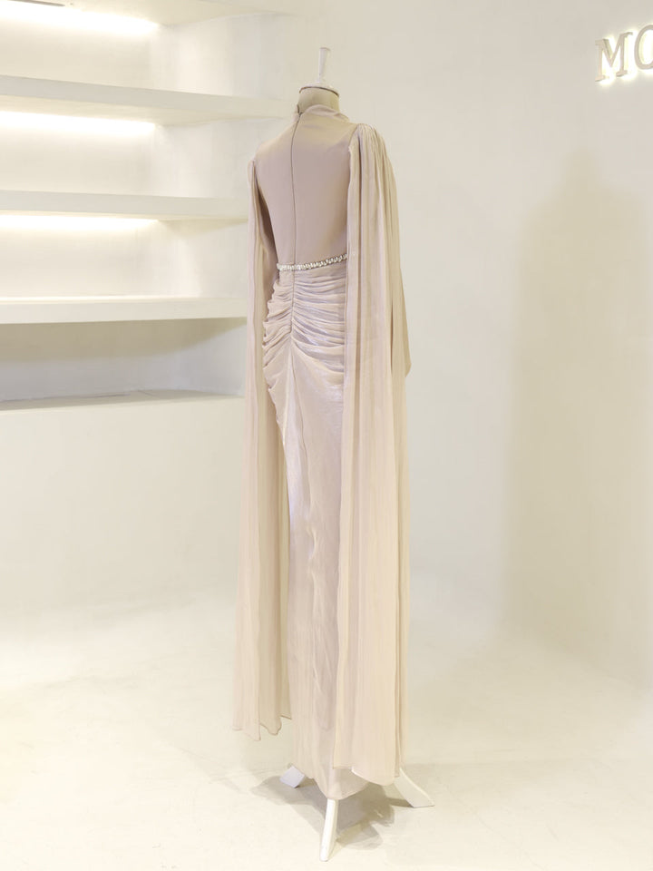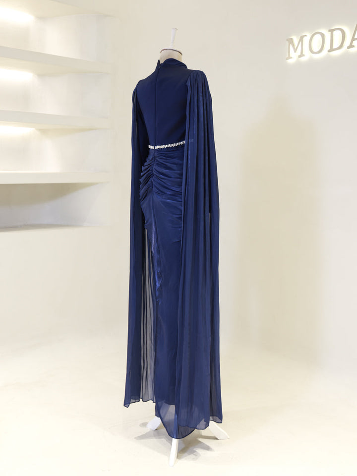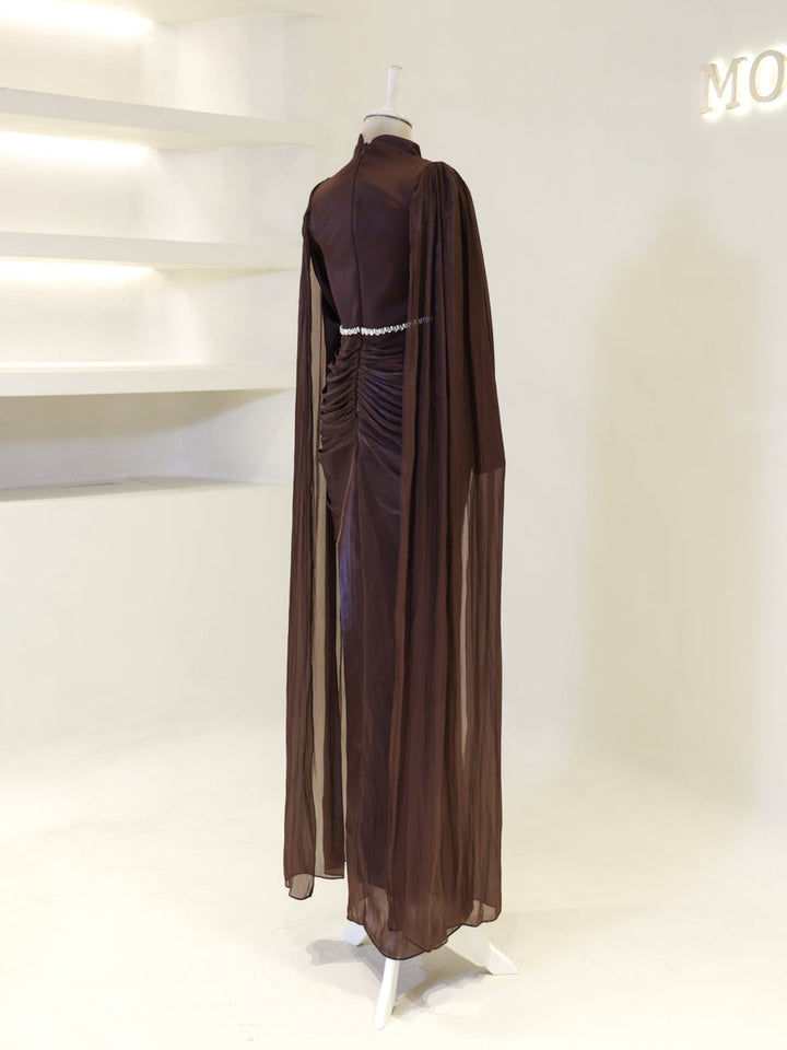 Omuzlardan etek ucuna inen pelerin detayı mevcuttur