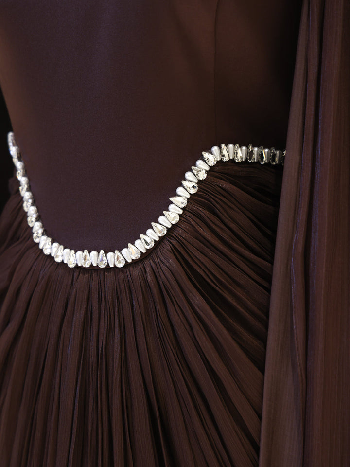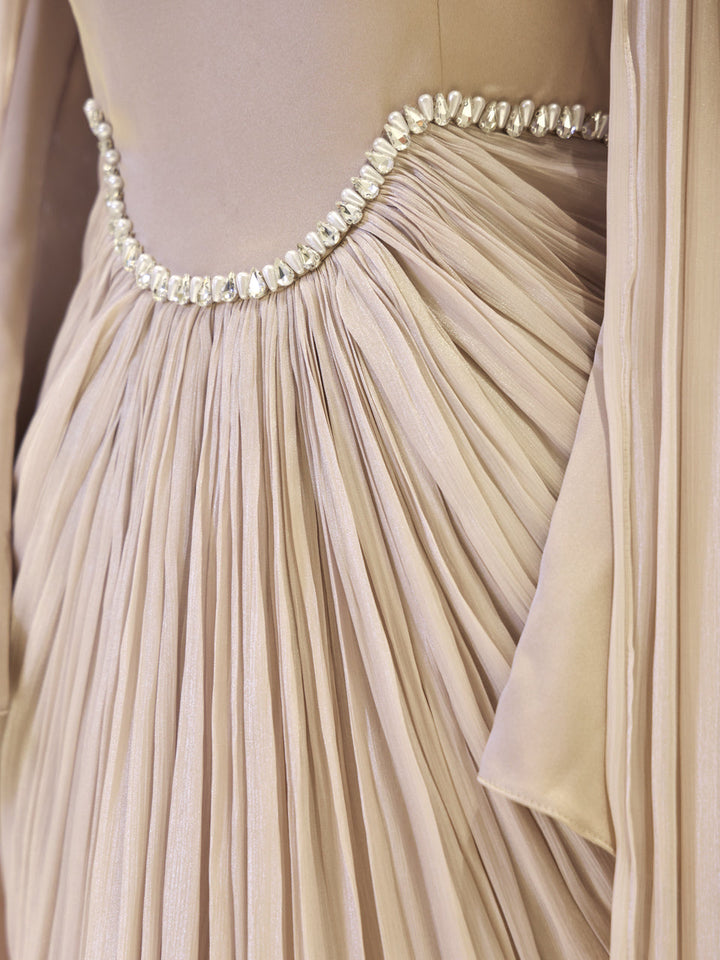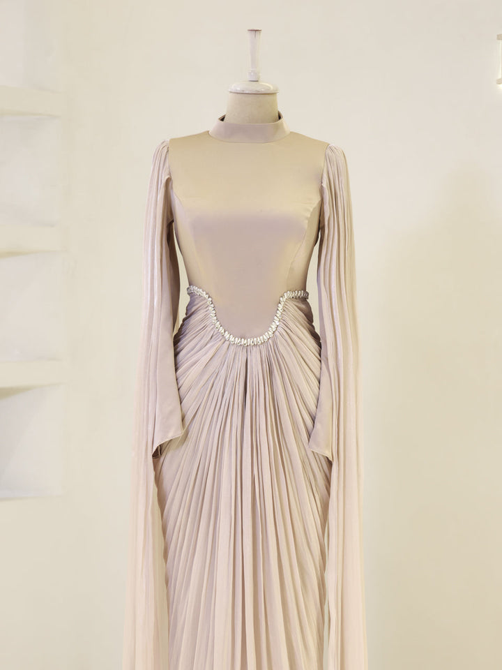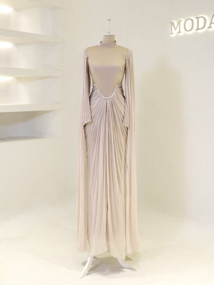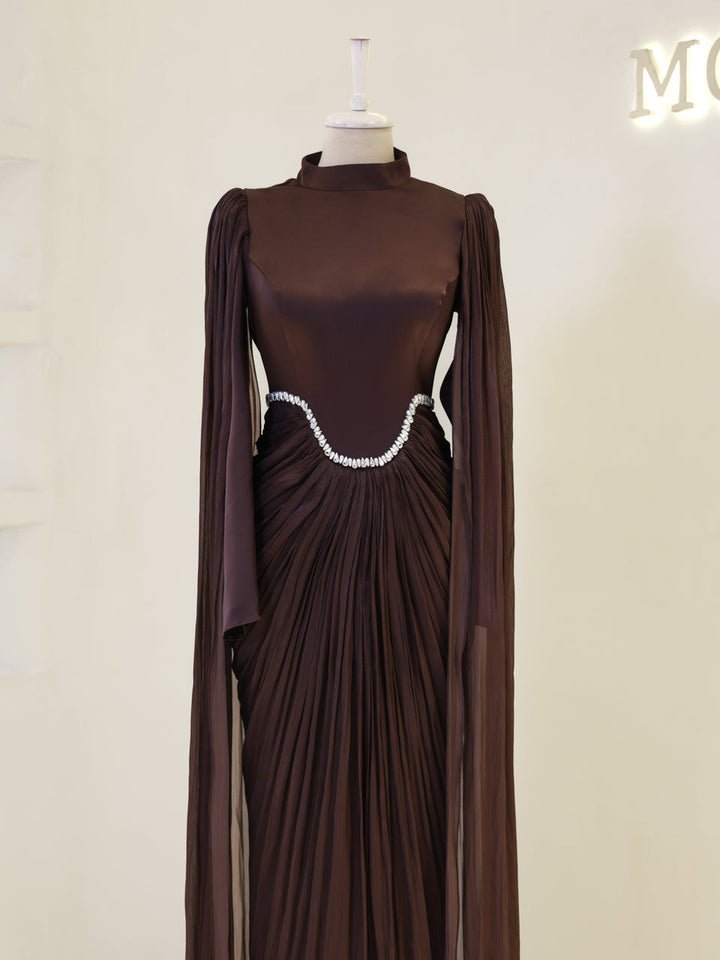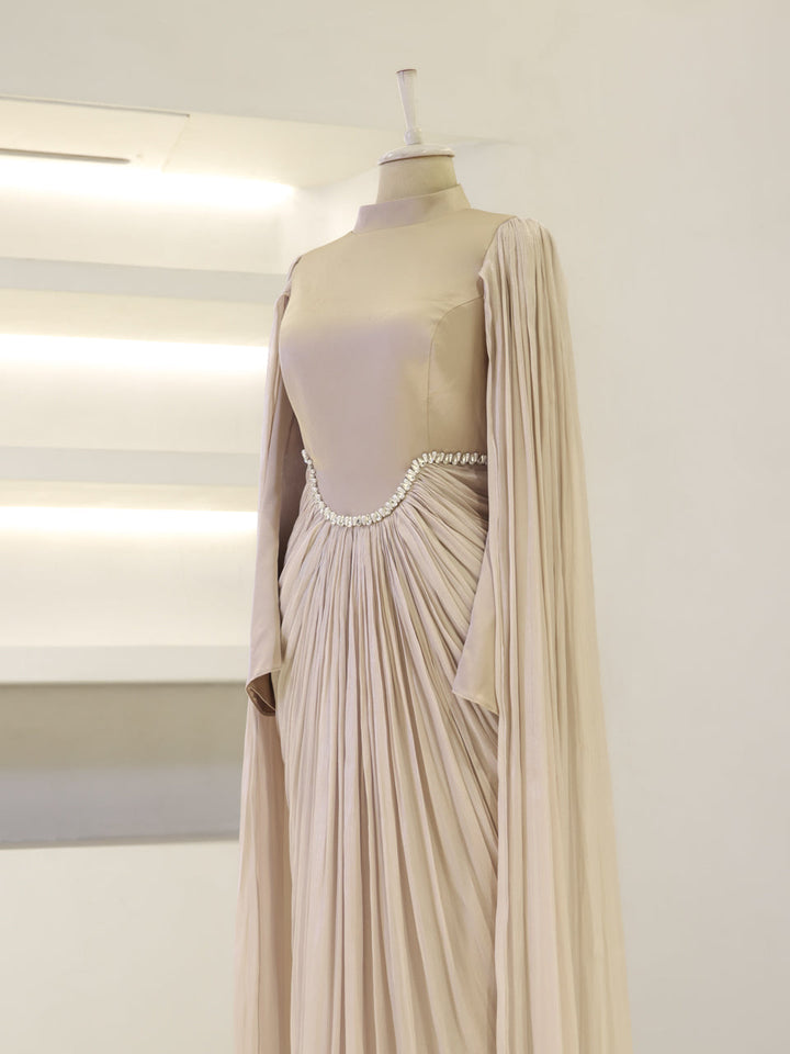 Omuzlardan etek ucuna inen pelerin detayı mevcuttur
